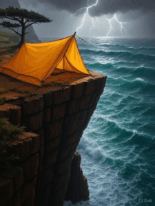 Sometimes it feels like we are on a cliff in a flimsy tent in stormy weather with raging seas below.